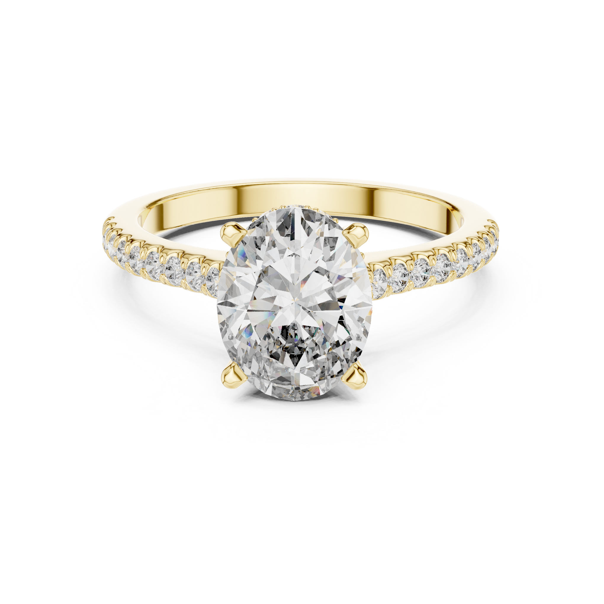 Discover the brilliance of a certified lab diamond ring from Siyaara.com. This exquisite piece is crafted to reflect Oval Solitaire, Thin Half-Eternity Pave Band