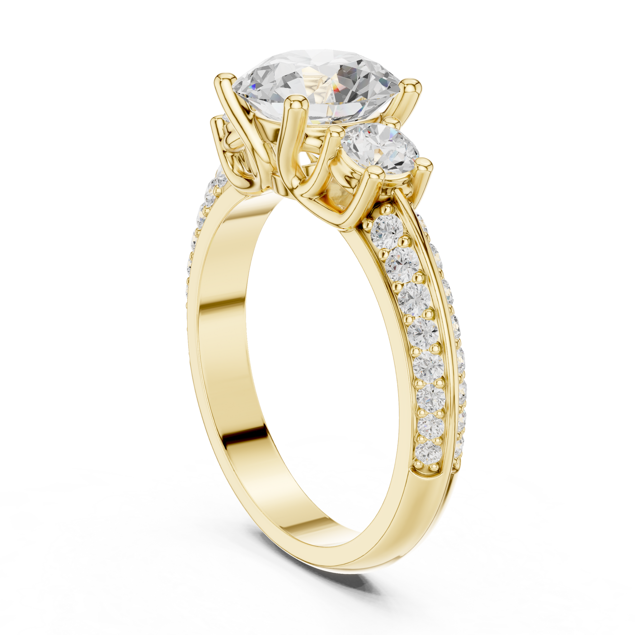 Discover the brilliance of a certified lab diamond ring from Siyaara.com. This exquisite piece is crafted to reflect The Graceful Trinity Round Ring is a timeless tribute to a love that is constant and ever-bright. This elegant three-stone ring features a brilliant round-cut center stone supported by two perfectly proportioned round side stones, creating a continuous flow of fire across the hand. Set in radiant yellow gold with shimmering pavé shoulders, this ring captures the essence of classic romance with a modern, high-brilliance finish.