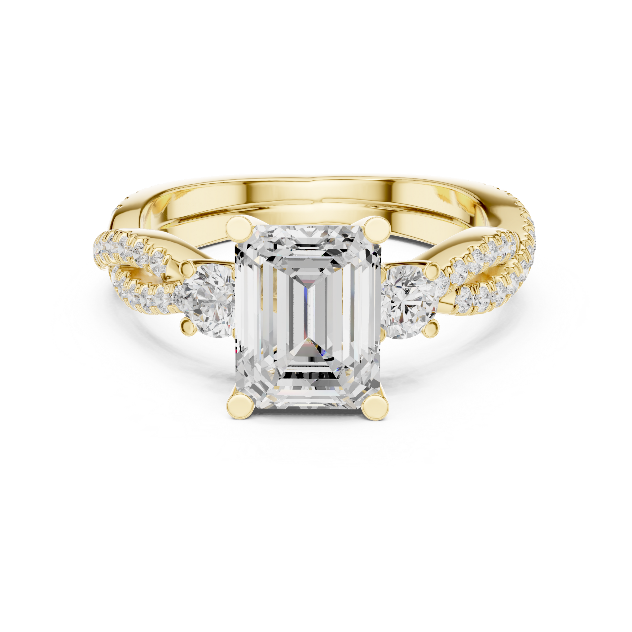 Discover the brilliance of a certified lab diamond ring from Siyaara.com. This exquisite piece is crafted to reflect The Infinite Emerald is a masterclass in balance, symmetry, and contemporary luxury. This ring features a powerful three-stone "Trilogy" arrangement, representing a journey of past, present, and future. Set within a sleek, high-profile architectural frame, the stones are elevated to capture maximum light, creating a continuous "horizon" of brilliance across the finger.