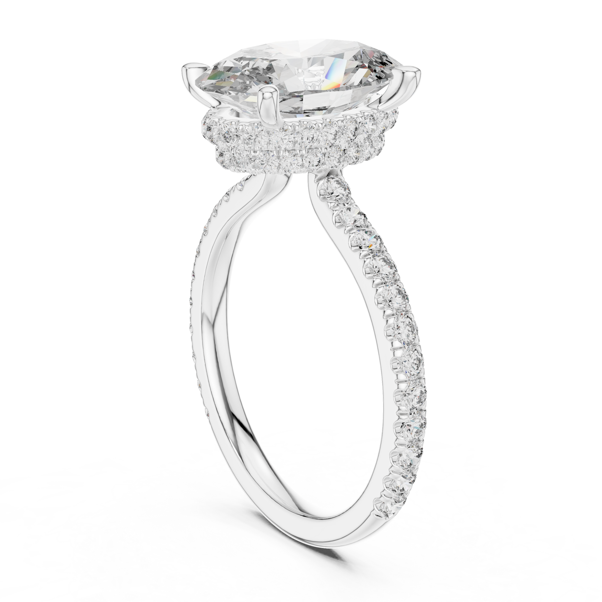 Discover the brilliance of a certified lab diamond ring from Siyaara.com. This exquisite piece is crafted to reflect Oval Solitaire, Hidden Halo Pave Band