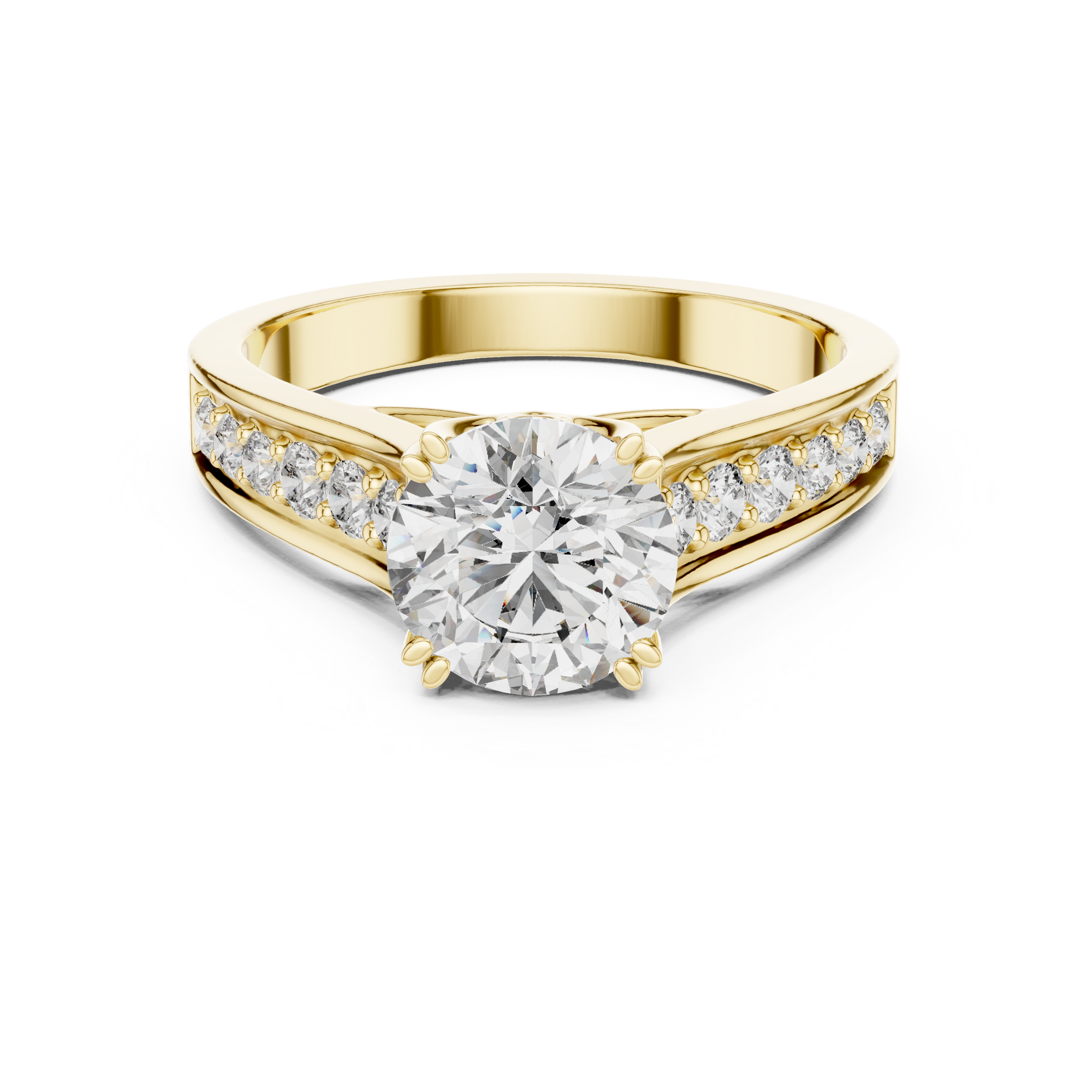 Discover the brilliance of a certified lab diamond ring from Siyaara.com. This exquisite piece is crafted to reflect Round Solitaire, Channel-Set Accent Diamonds on Band