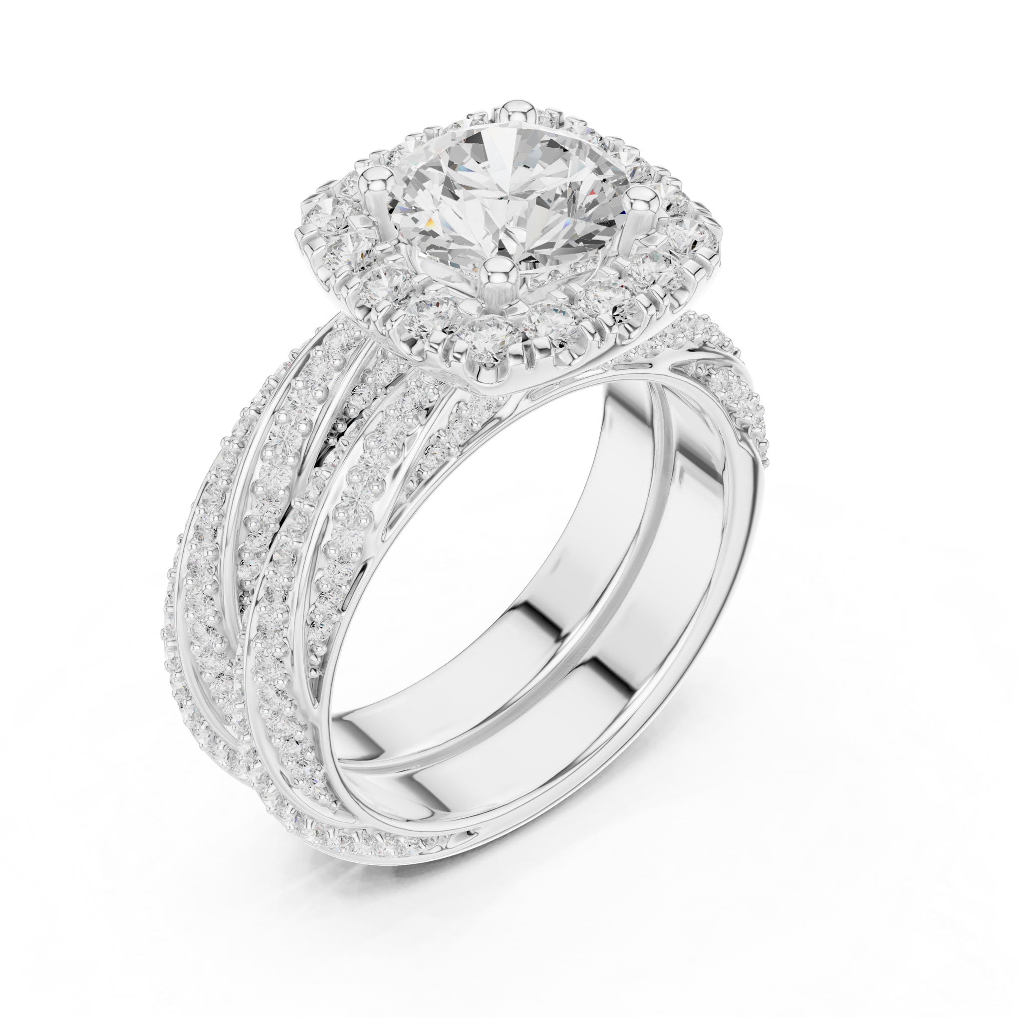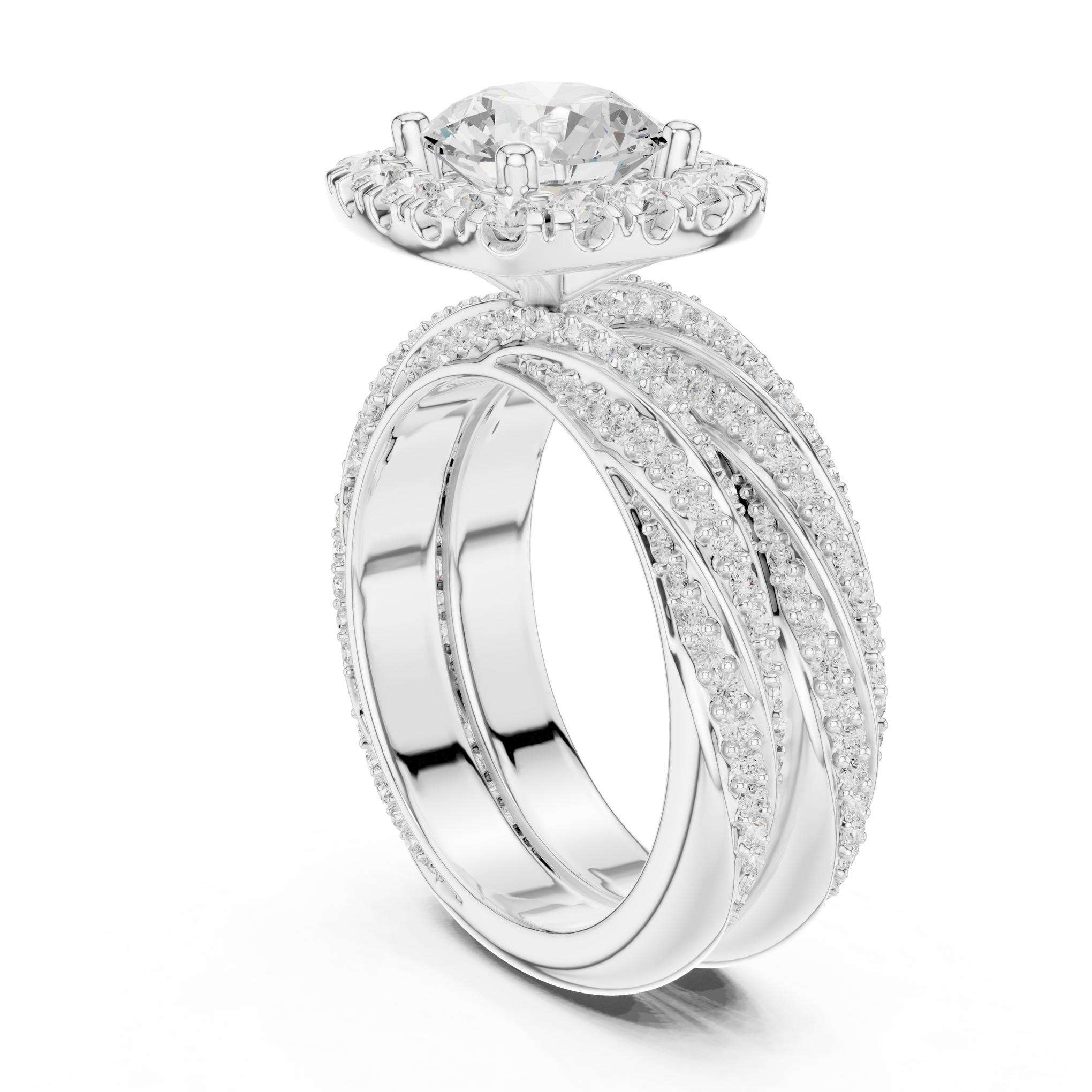 Discover the brilliance of a certified lab diamond ring from Siyaara.com. This exquisite piece is crafted to reflect The Serene is a breathtaking display of movement and light, designed for the individual who desires ultimate brilliance. At its heart sits a high-clarity round brilliant-cut stone framed by a soft-cornered square halo, creating a striking geometric contrast. The design is defined by its extraordinary multi-strand twisting band, where rows of hand-set pave diamonds intertwine like a celestial vortex, offering an uninterrupted flow of sparkle from every conceivable angle.