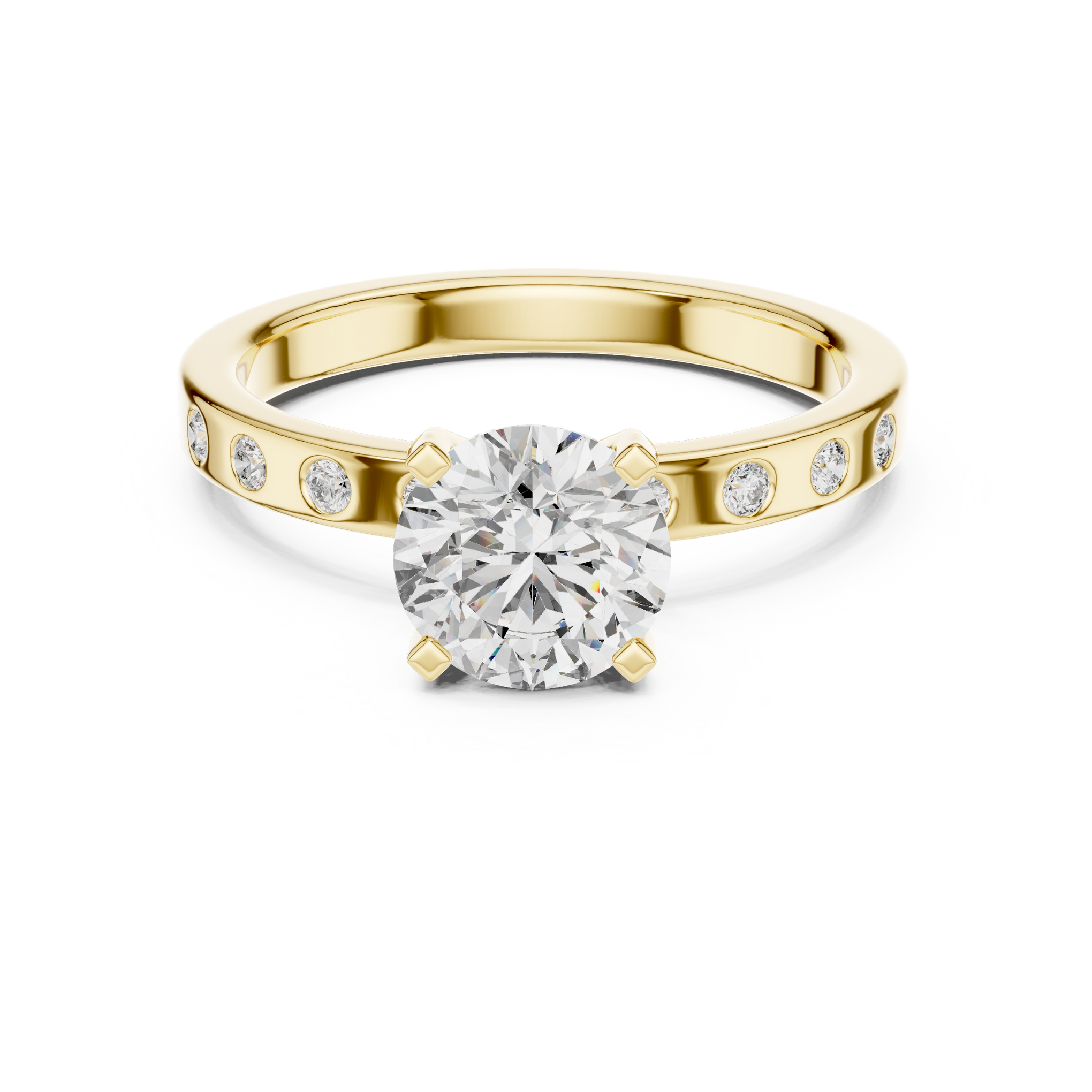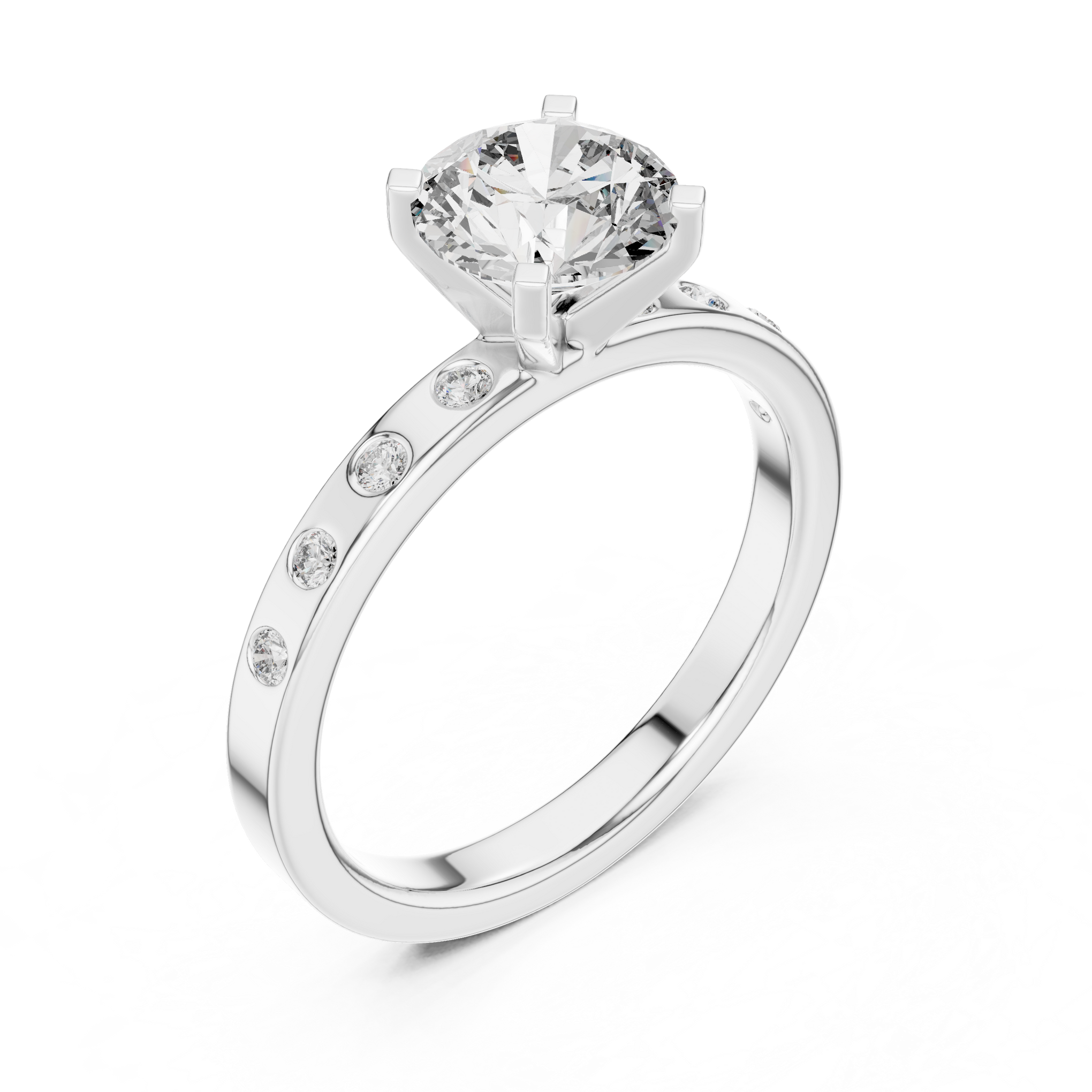 Discover the brilliance of a certified lab diamond ring from Siyaara.com. This exquisite piece is crafted to reflect Round Solitaire, Bezel-Set Accent Diamonds on Band