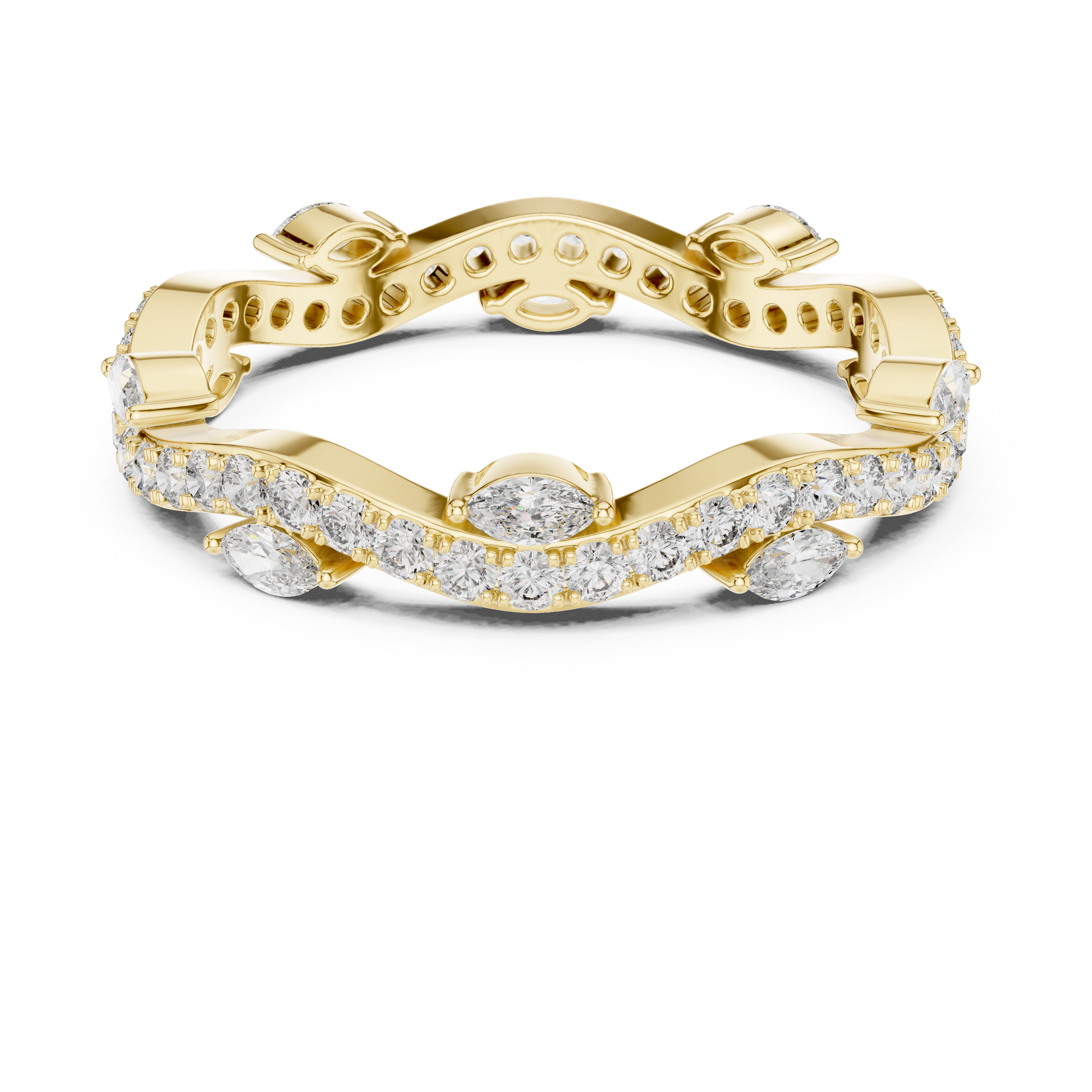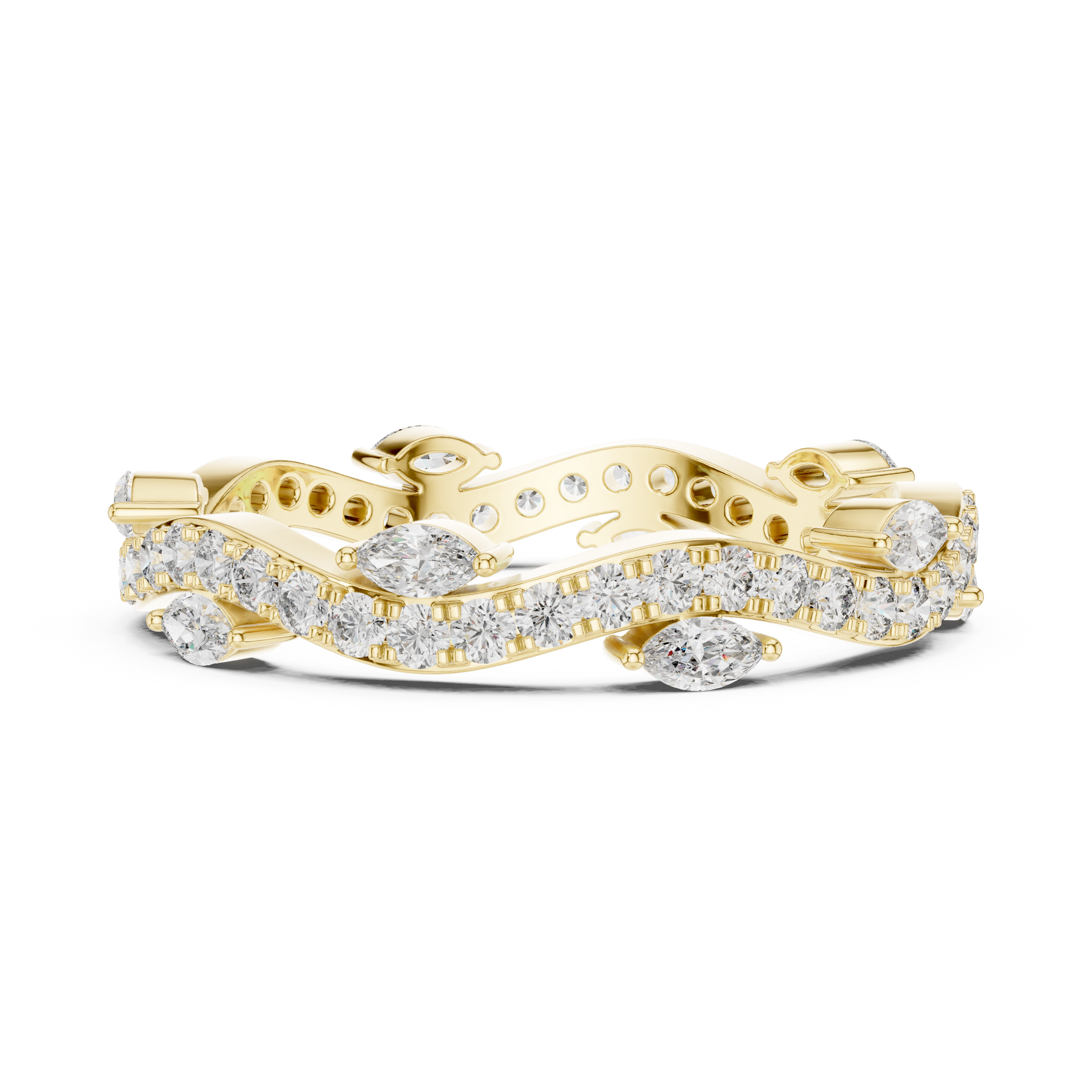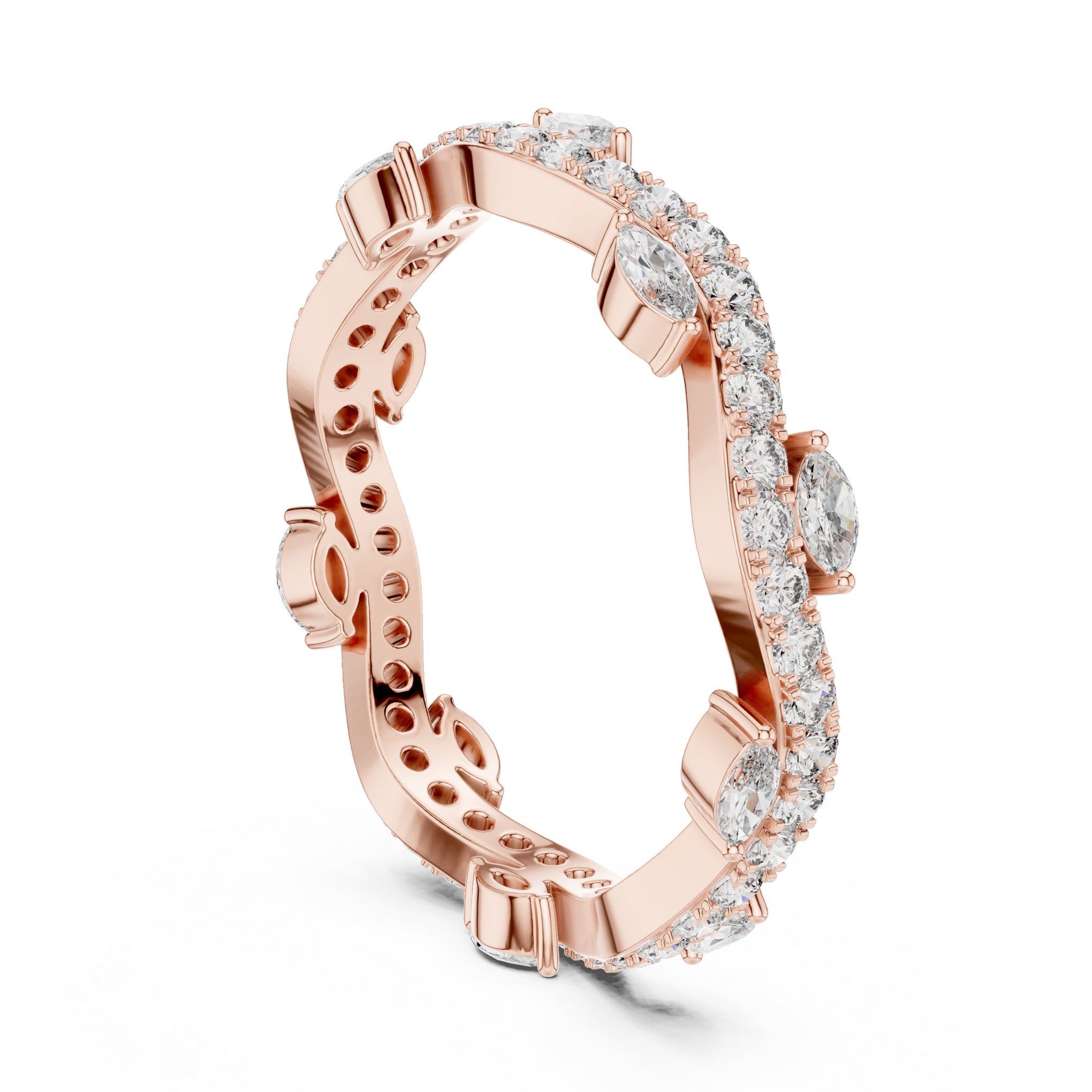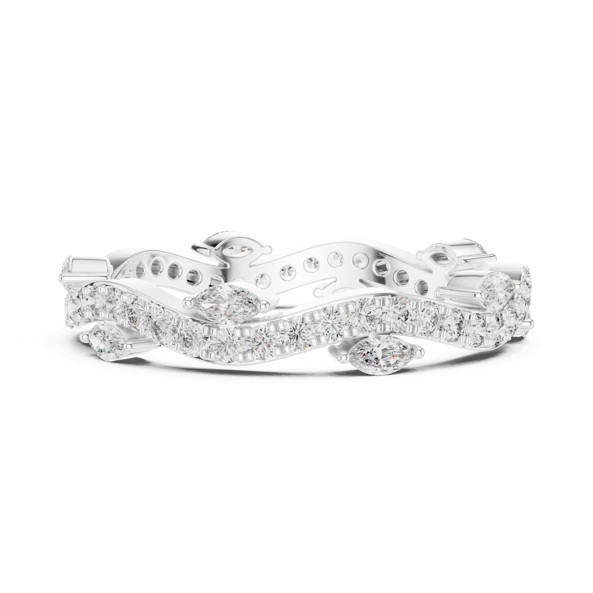 Discover the brilliance of a certified lab diamond ring from Siyaara.com. This exquisite piece is crafted to reflect Wavy Marquise & Round Accent Band
