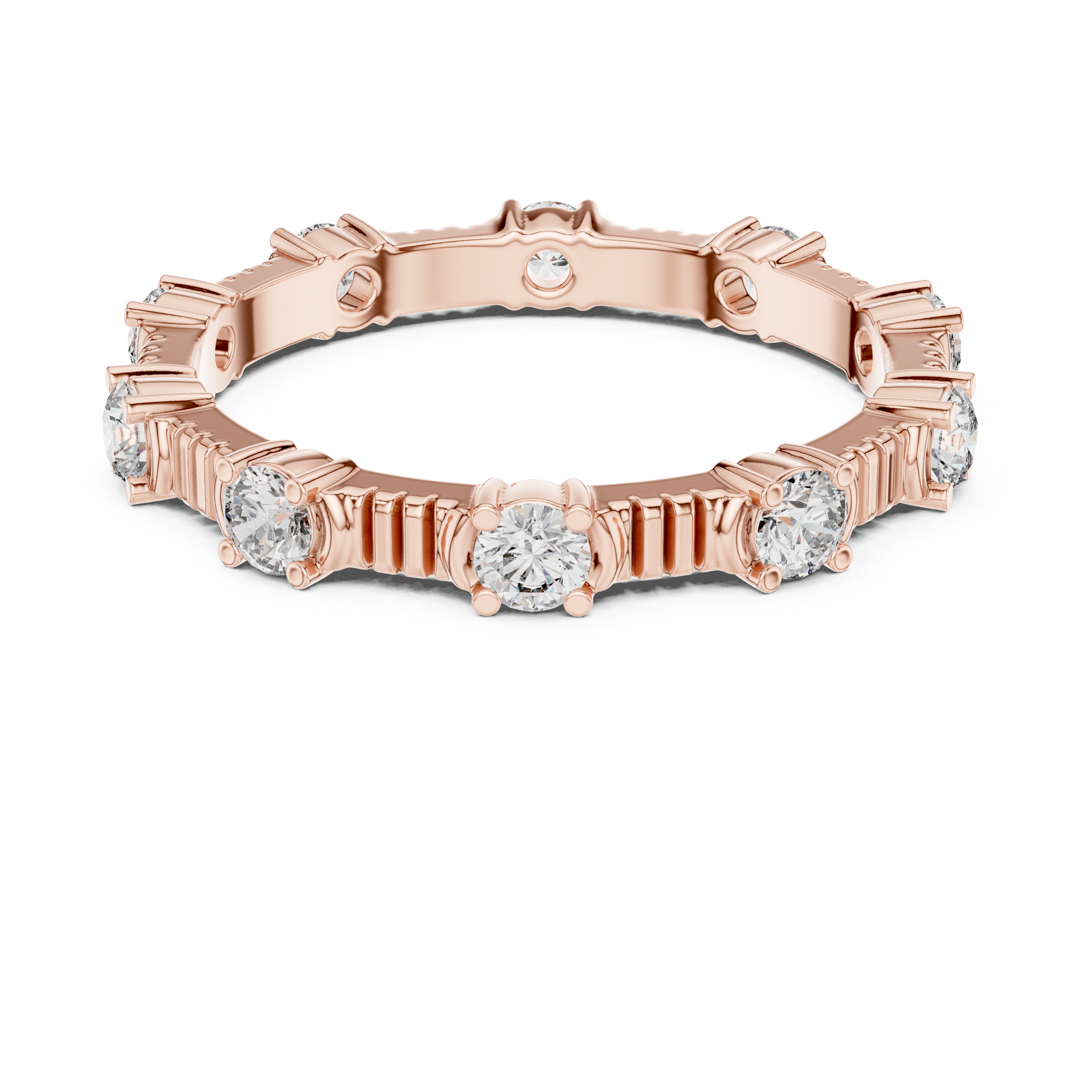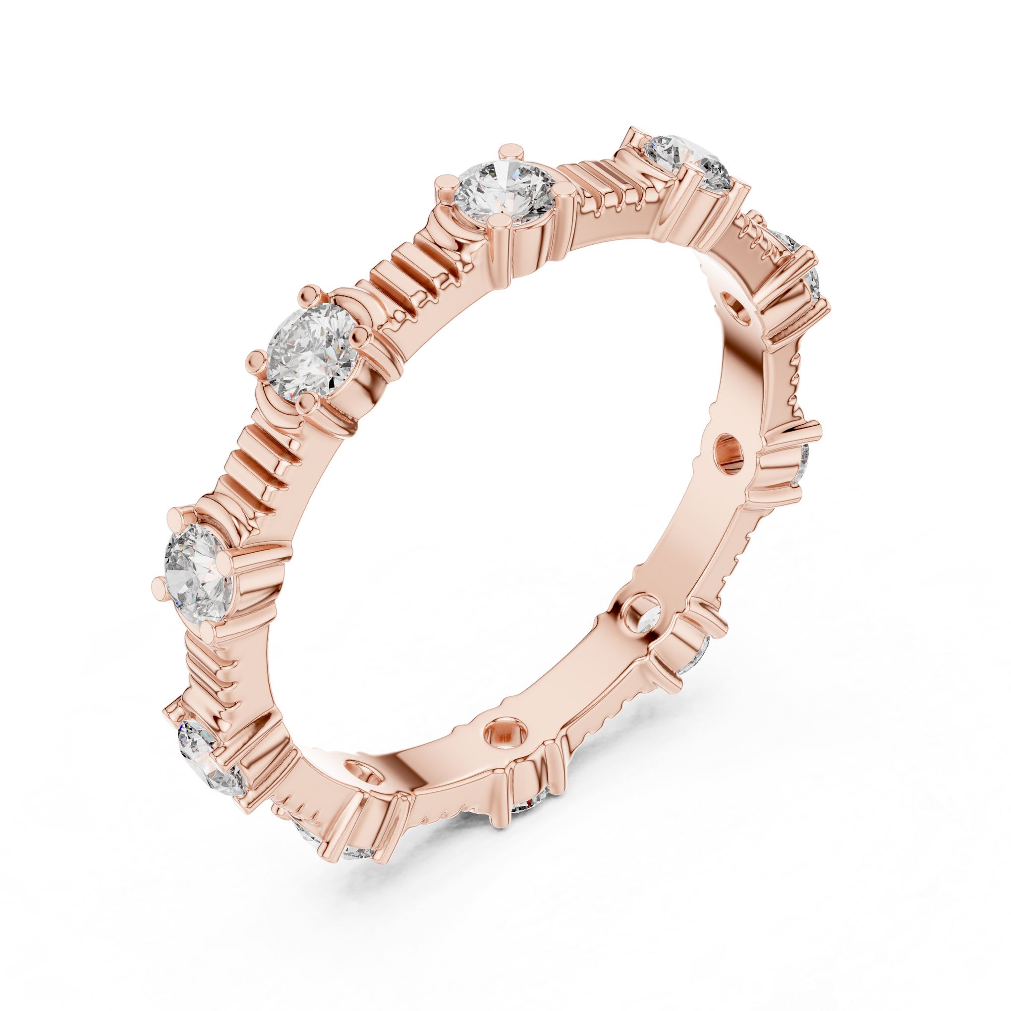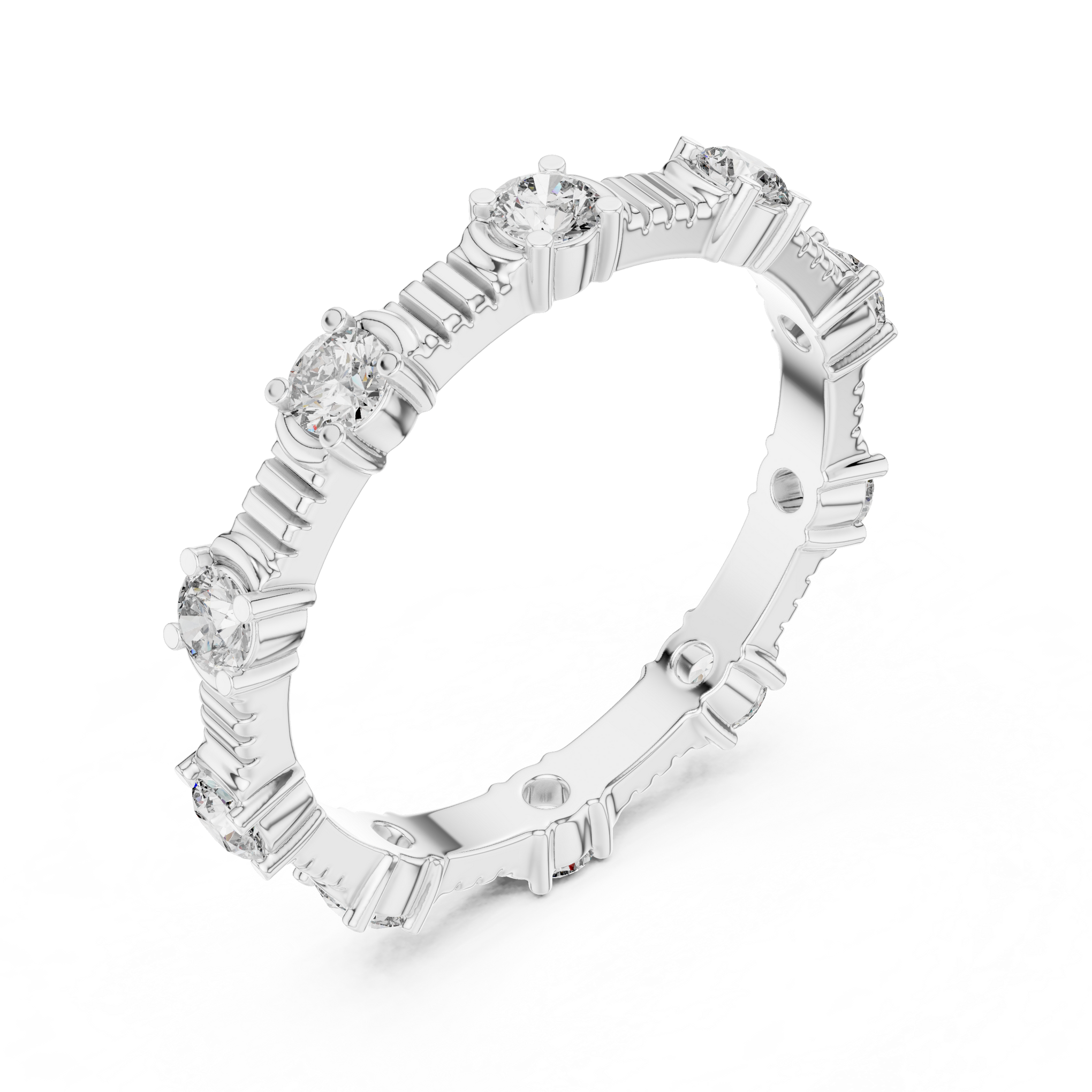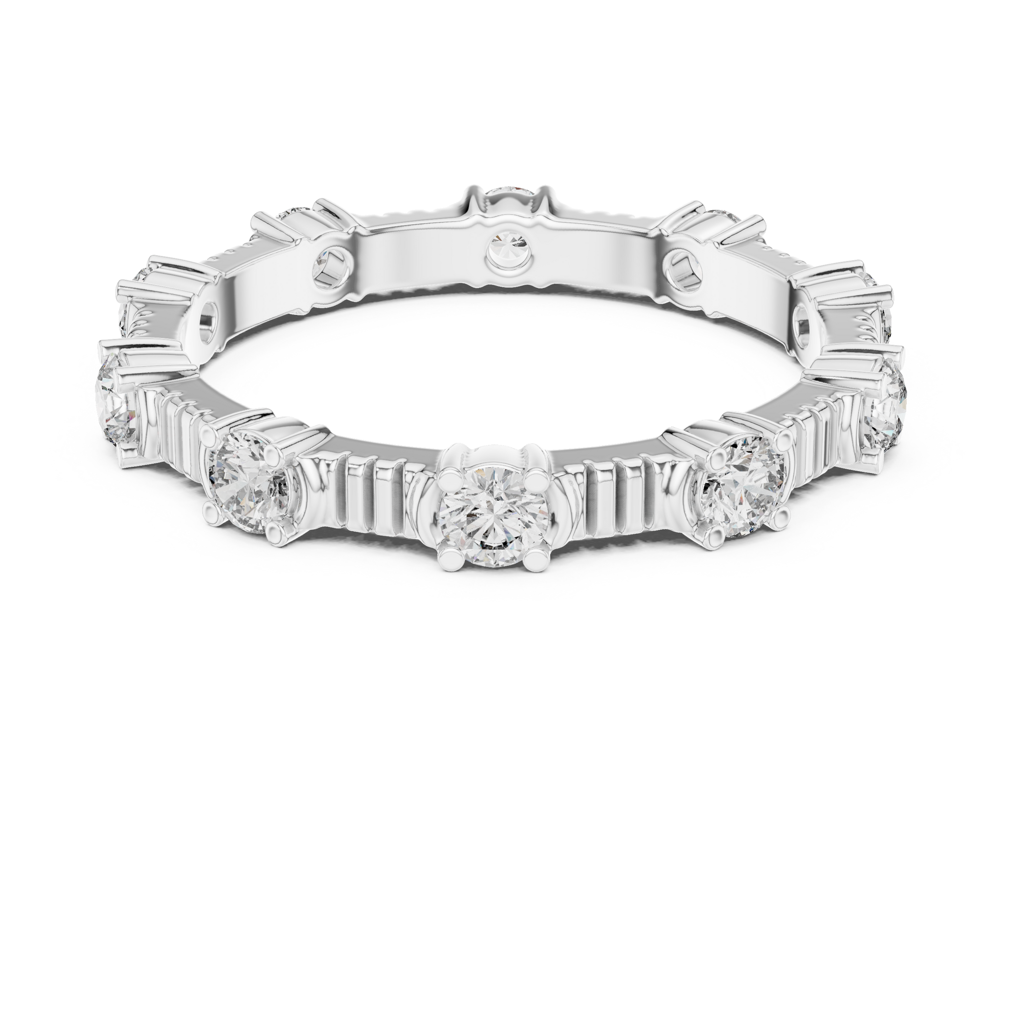 Round Diamond Ribbed Station Ring- Siyaara.com