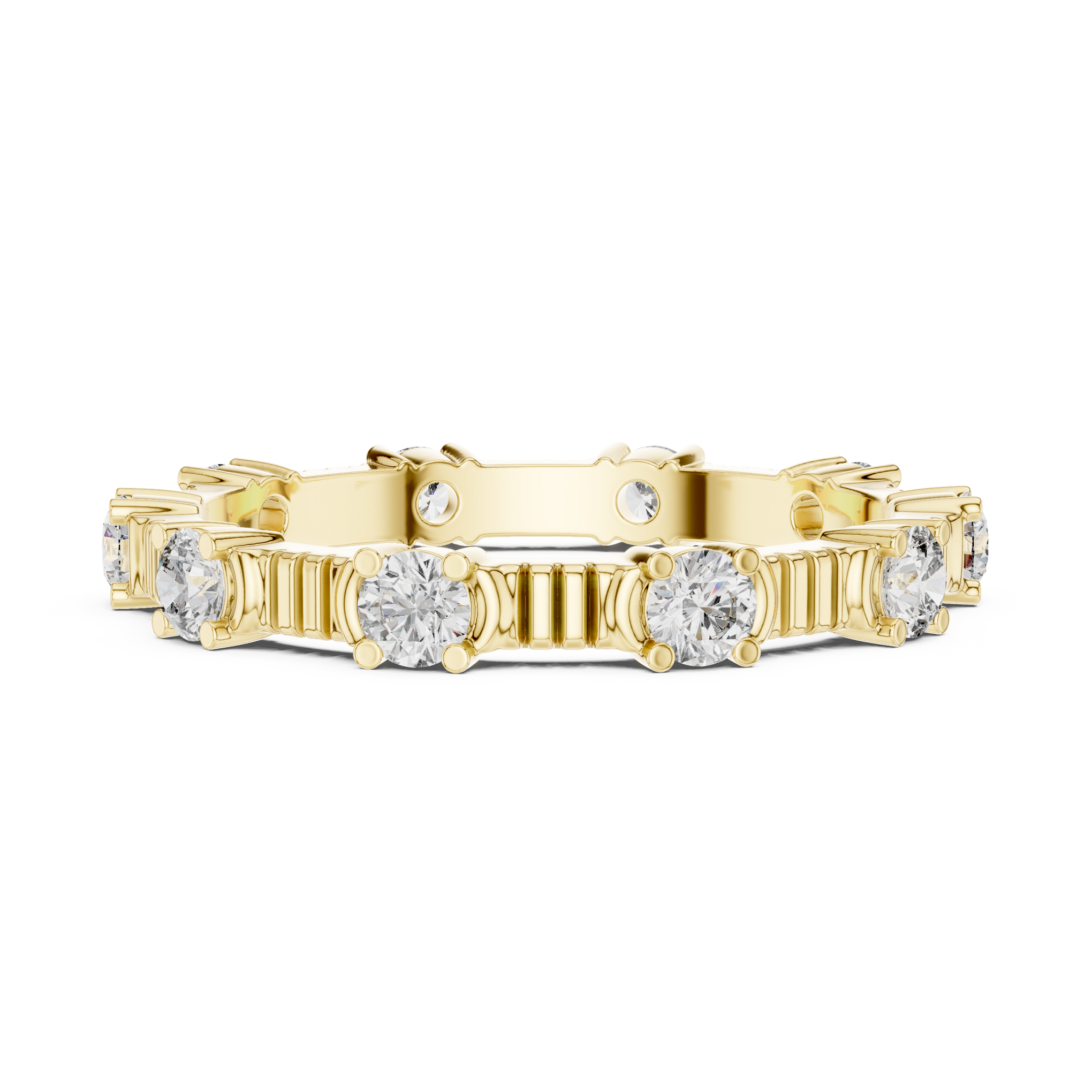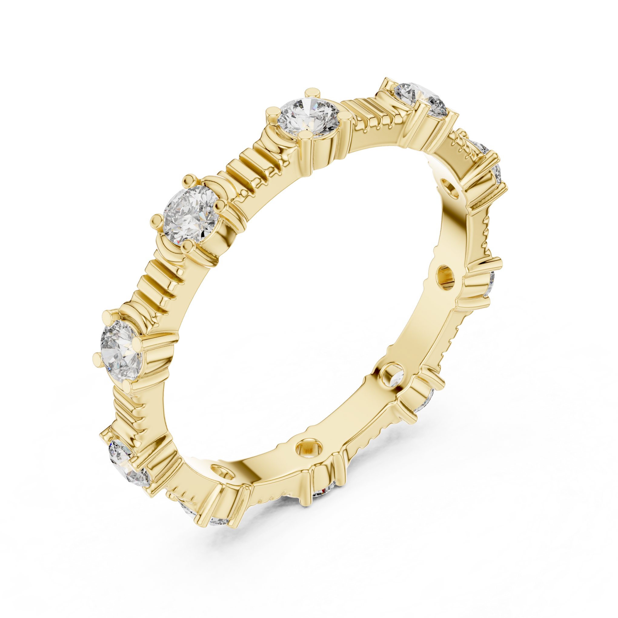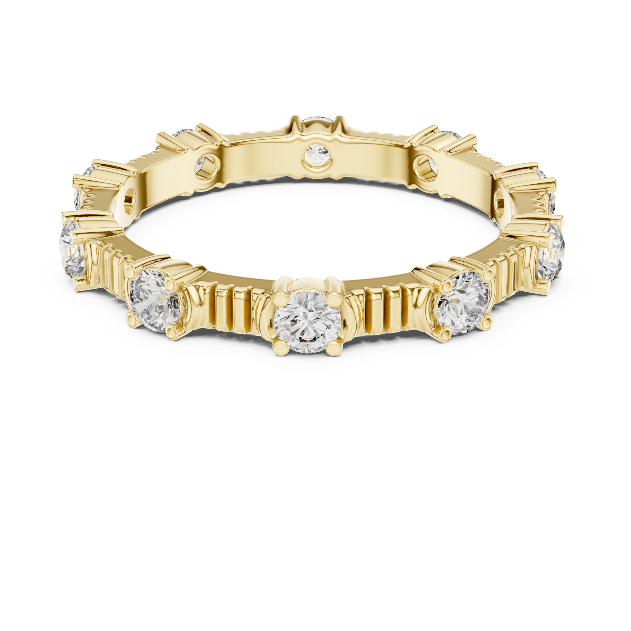 Discover the brilliance of a certified lab diamond ring from Siyaara.com. This exquisite piece is crafted to reflect Ribbed Gold & Round Diamond Station Band