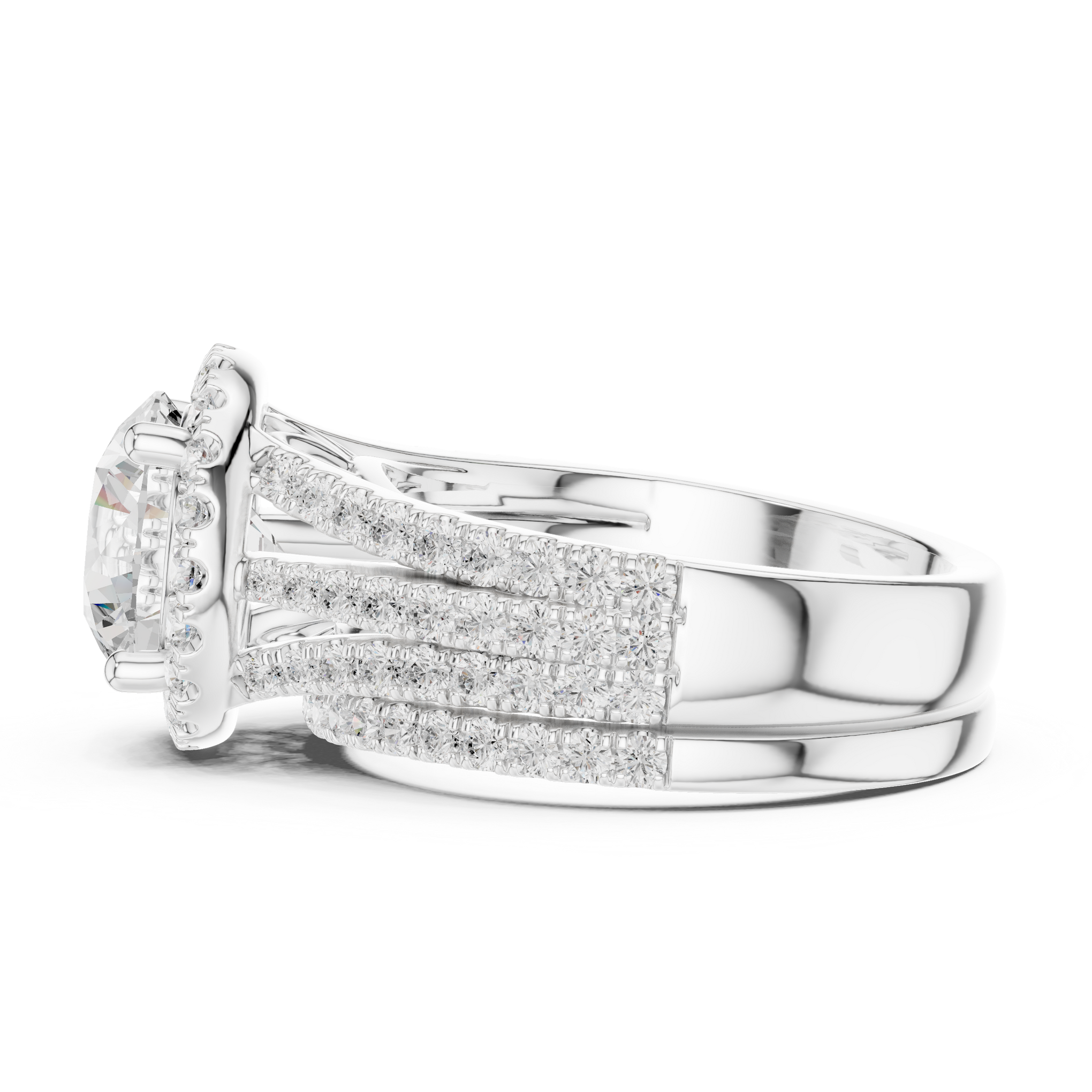 Discover the brilliance of a certified lab diamond ring from Siyaara.com. This exquisite piece is crafted to reflect The Elysian Halo Round Ring is an opulent statement of light and luxury. This ring centers on a high-clarity round brilliant-cut stone framed by a shimmering diamond halo that amplifies its natural fire. The most striking feature is its Four-tiered band, encrusted with rows of pavé diamonds that wrap around the finger, creating a continuous surface of brilliance from every angle.