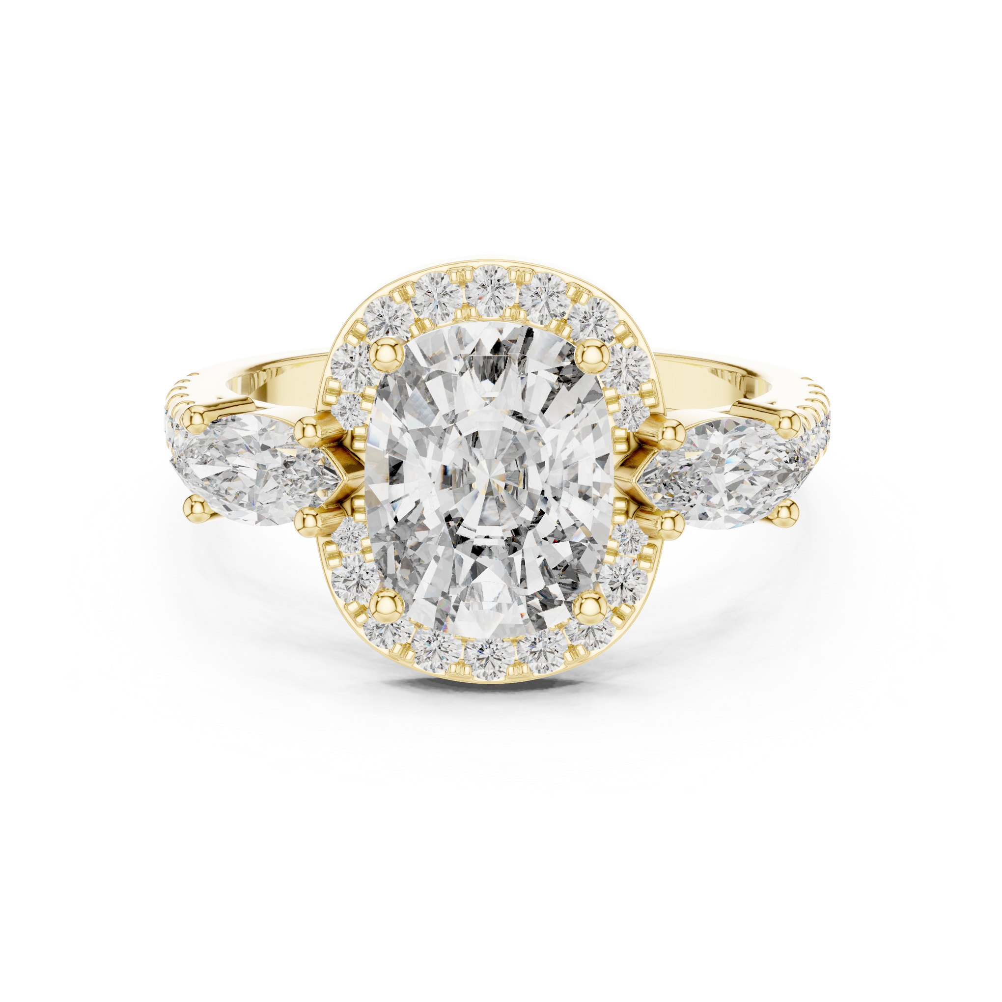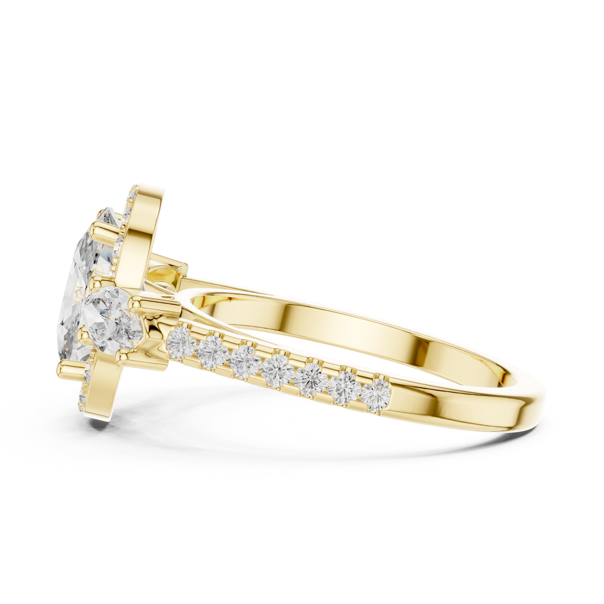Discover the brilliance of a certified lab diamond ring from Siyaara.com. This exquisite piece is crafted to reflect Oval Cut, Marquise Accent Halo, Pave Band
